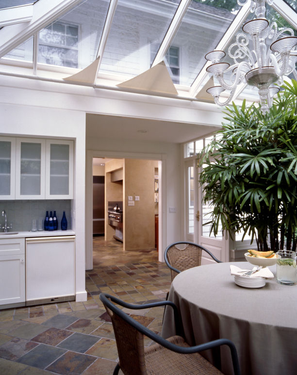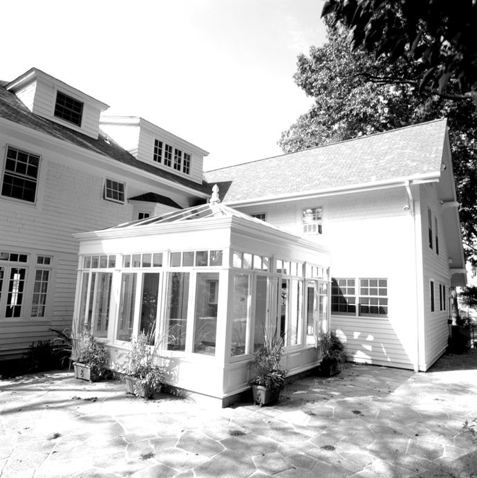 A custom-designed conservatory which "quoted" the more interesting elements of the original structure was fabricated in York England and then shipped to the US (with Yorkshire mechanics!) for installation.